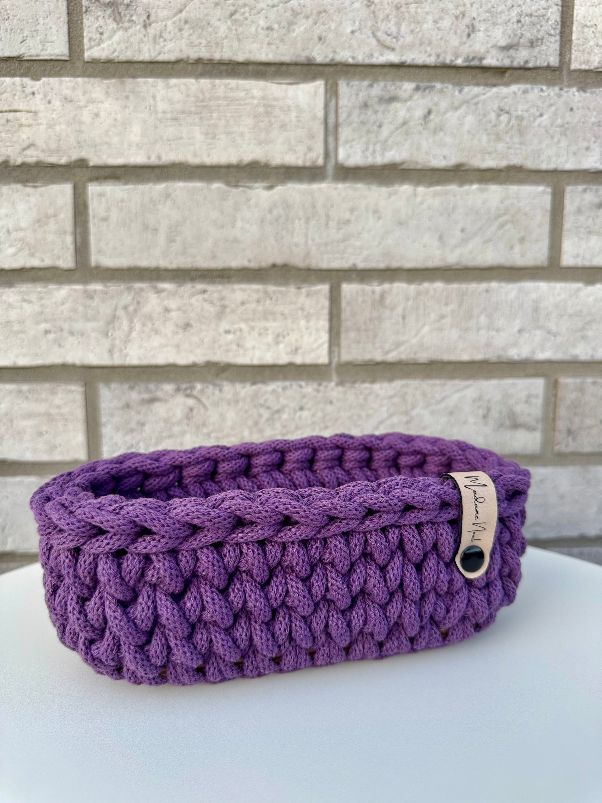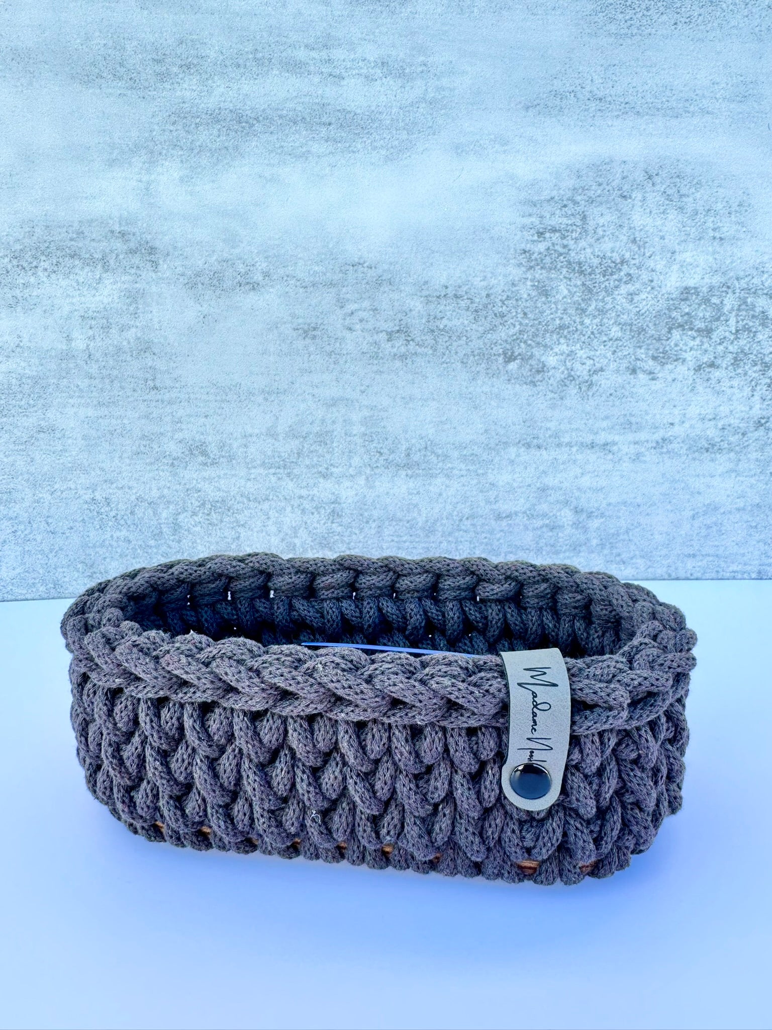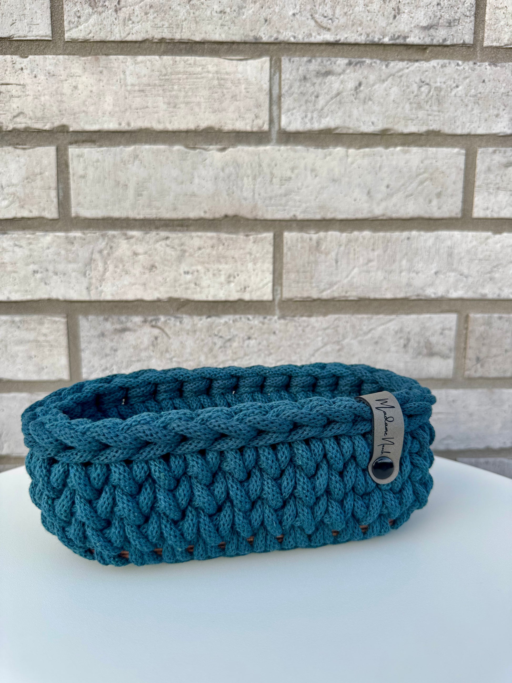 Nie mehr langes Suchen: Mit dem handgefertigten Brillenparkplatz aus recyceltem Baumwollgarn hat deine Brille endlich ihren festen Platz. Ob auf dem Nachttisch, im Eingangsbereich oder auf dem Schreibtisch – dieses kleine Körbchen sorgt für Ordnung und einen Hauch von Stil.
