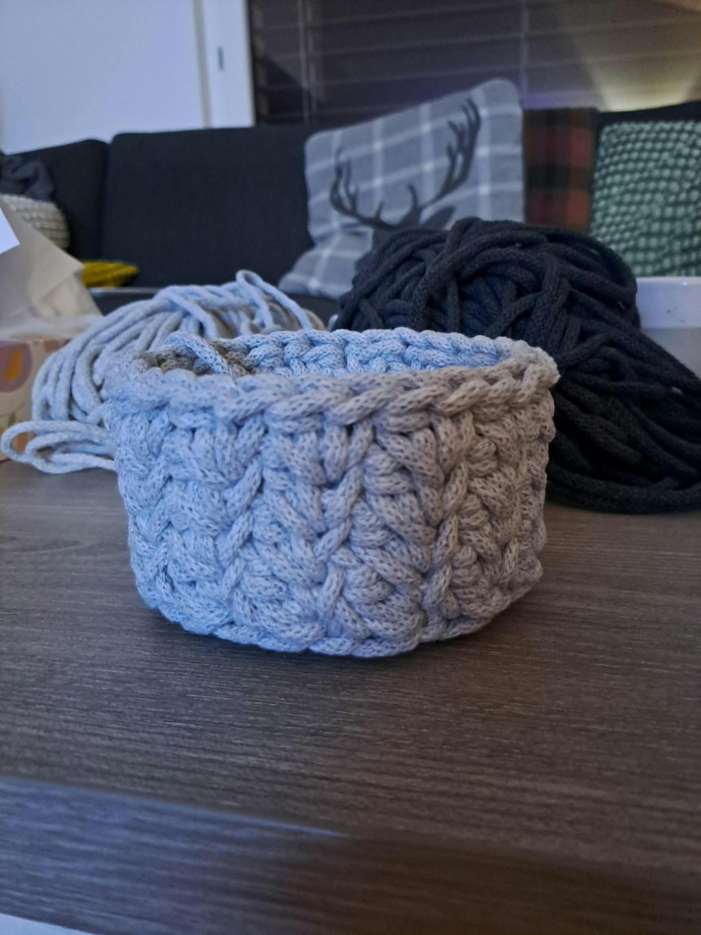 - Häkel- und Strickprojekte wie Teppiche, Körbe, Hocker usw.
